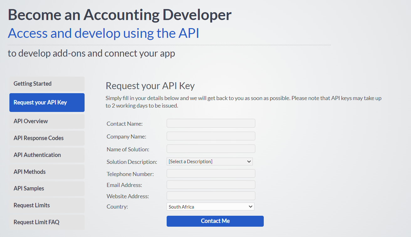 Switch to the ‘Request your API Key’ tab and fill in the required details.