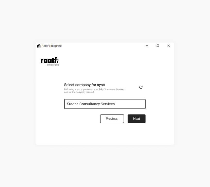 In the next step, the user needs to select the company for syncing from the list of companies that are displayed and then click on ‘Next’.