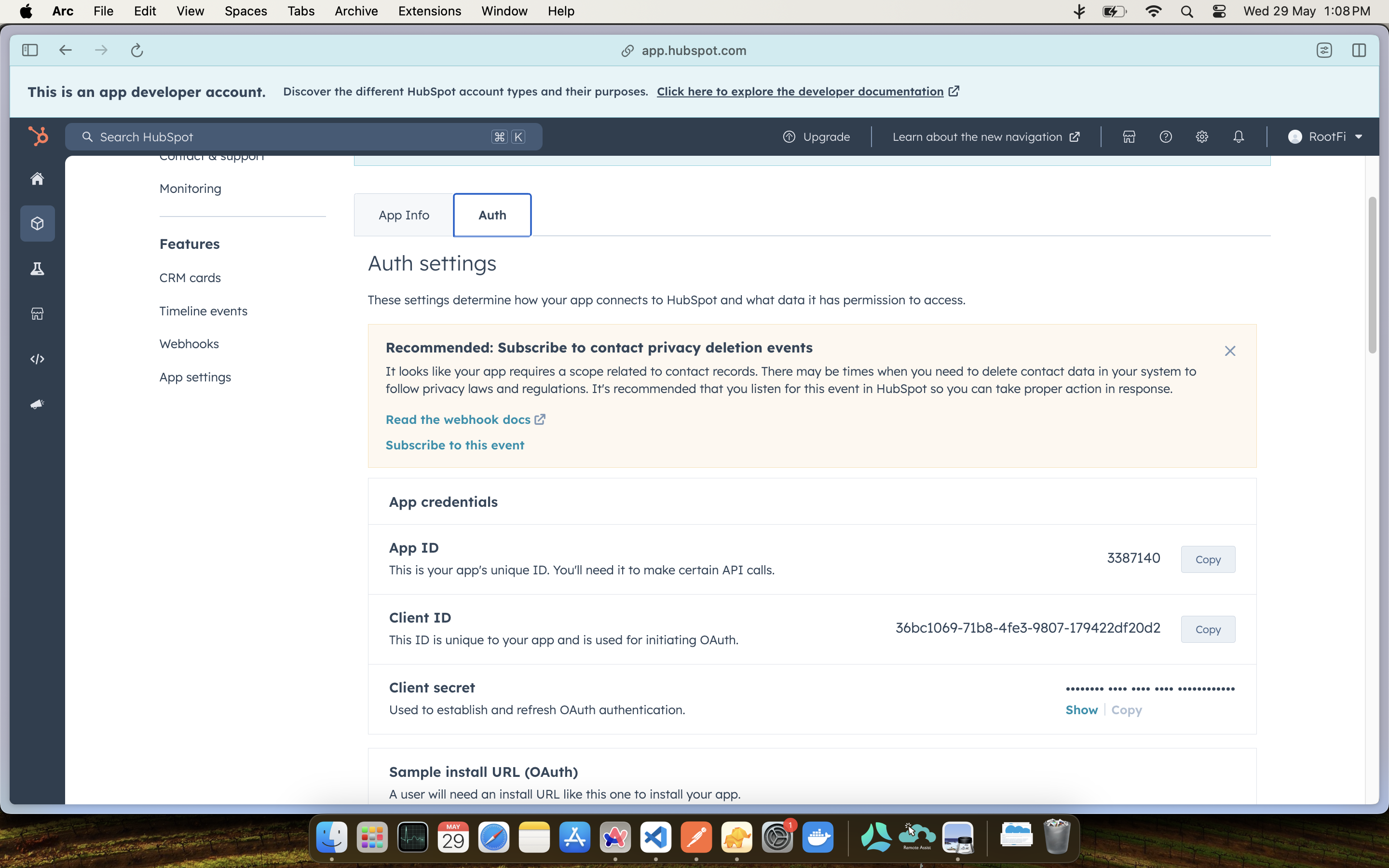 - Visit the ‘Auth’ tab again and copy the ‘Client ID’ and ‘Client Secret’ values.