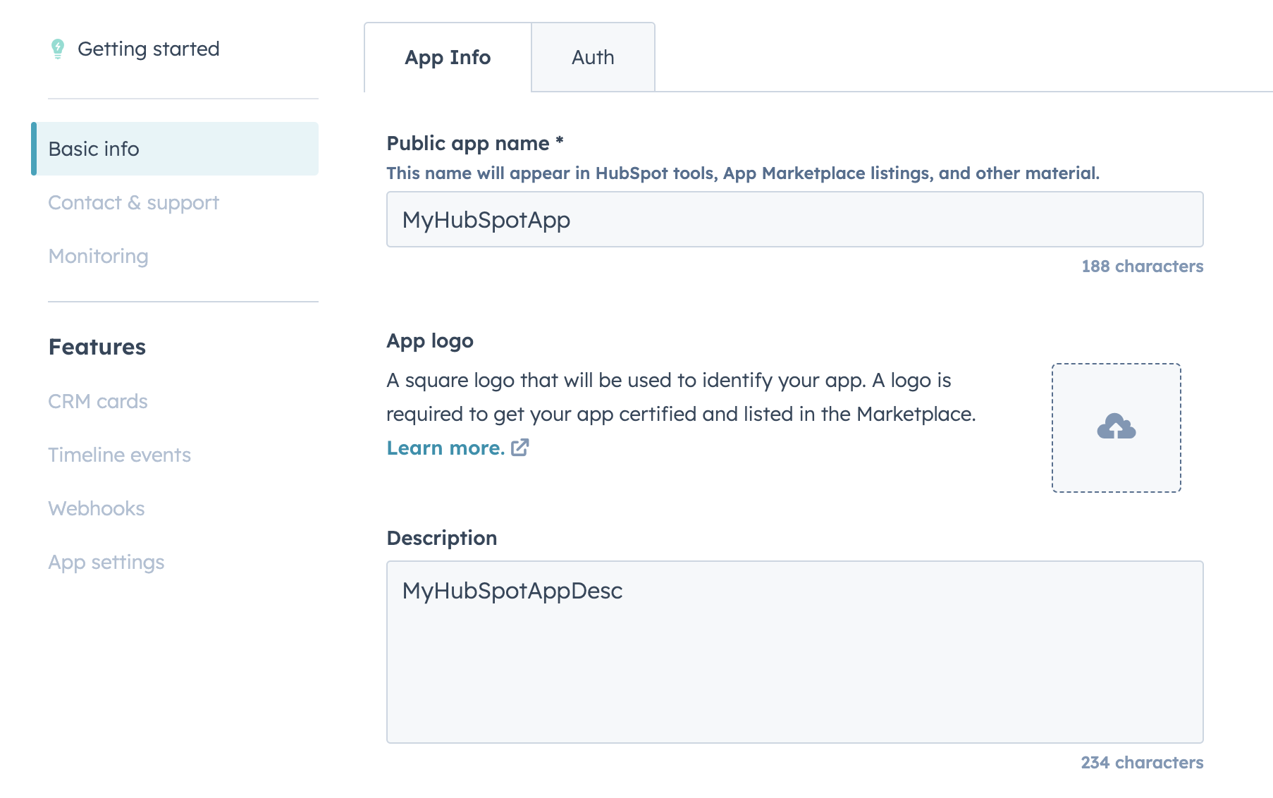- When the form opens up simply enter the ‘Client ID’ and ‘Client Secret’ which you generated on the Hubspot Developer App and click ‘Save’