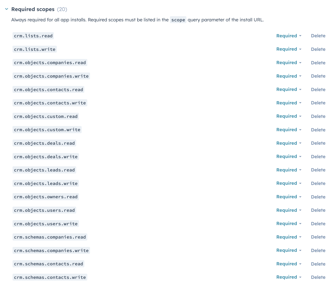 - Scopes: Select the scopes you need for your integration. For RootFi, you will need the following scopes: