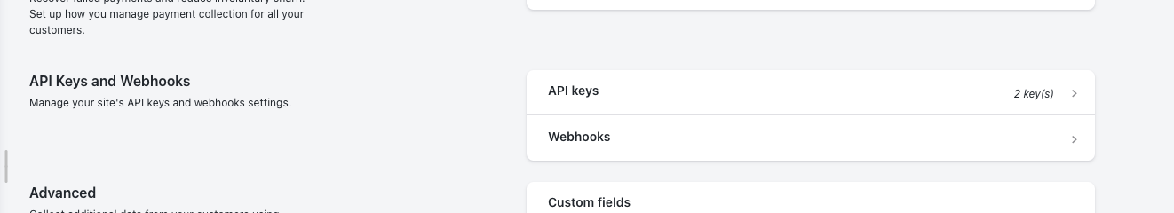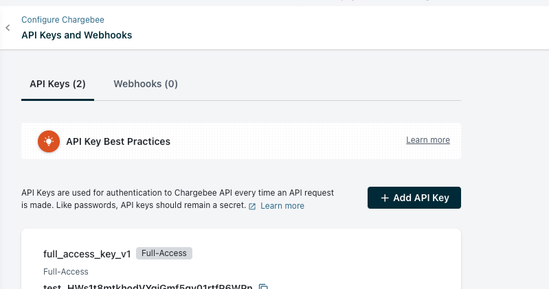 - Navigate to the ‘API Keys and Webhooks’ section and click on ‘API Keys’