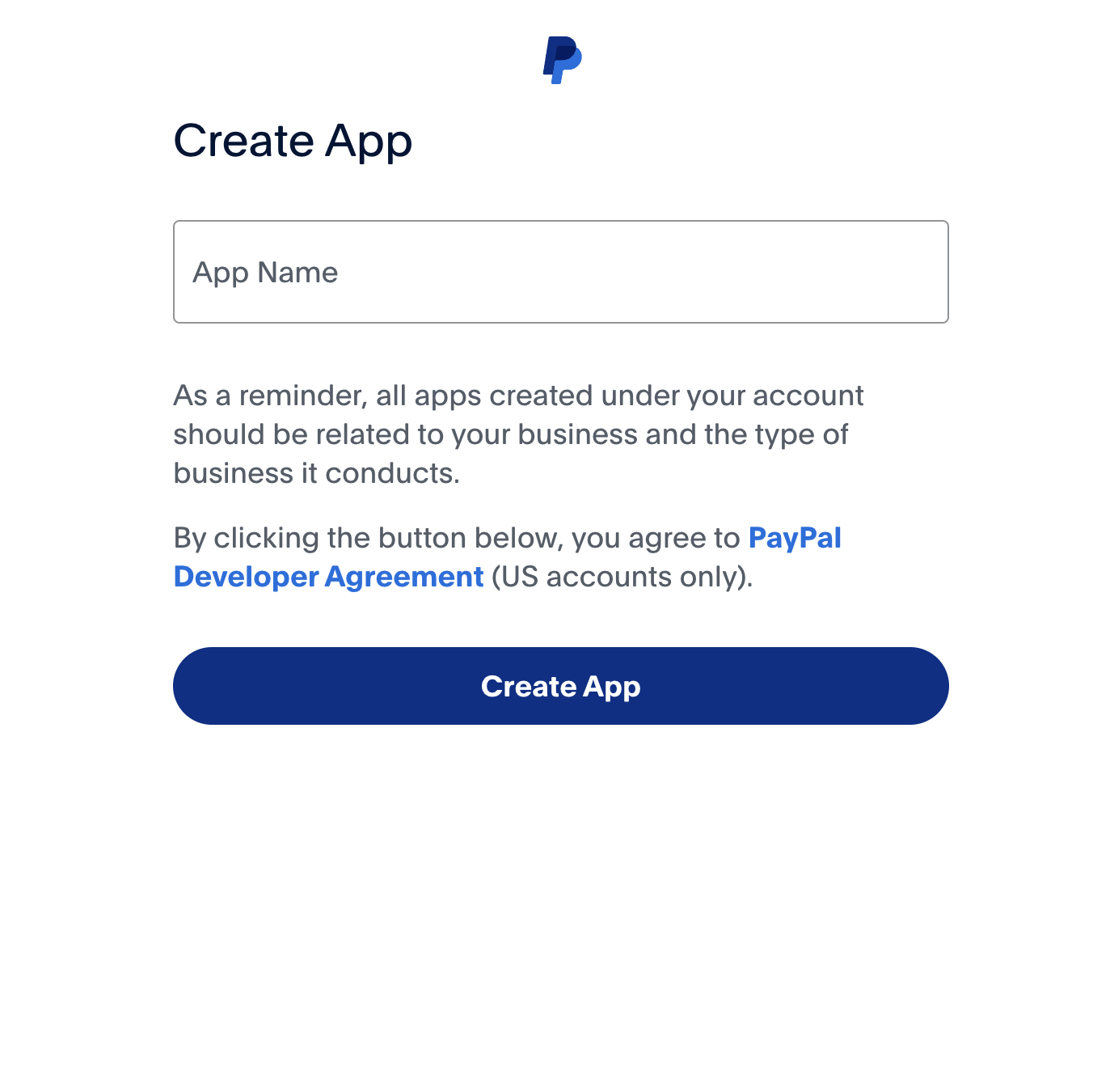 - Click the “Create App” button to create a new application