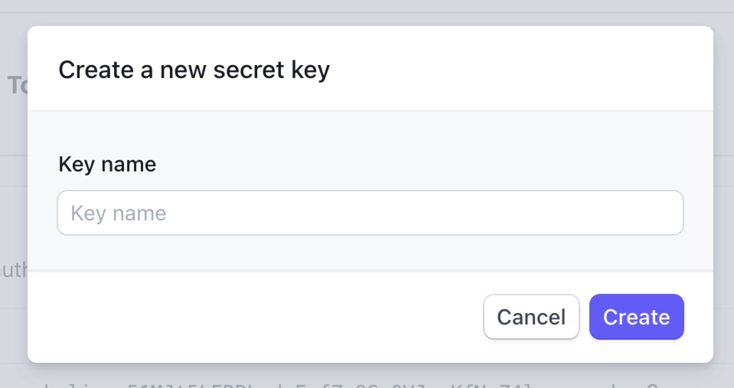 - Click “Create secret key” button and a enter a key name to generate a new secret key. This will be your Client Secret that you will enter on RootFi’s dashboard in Part 2 below.