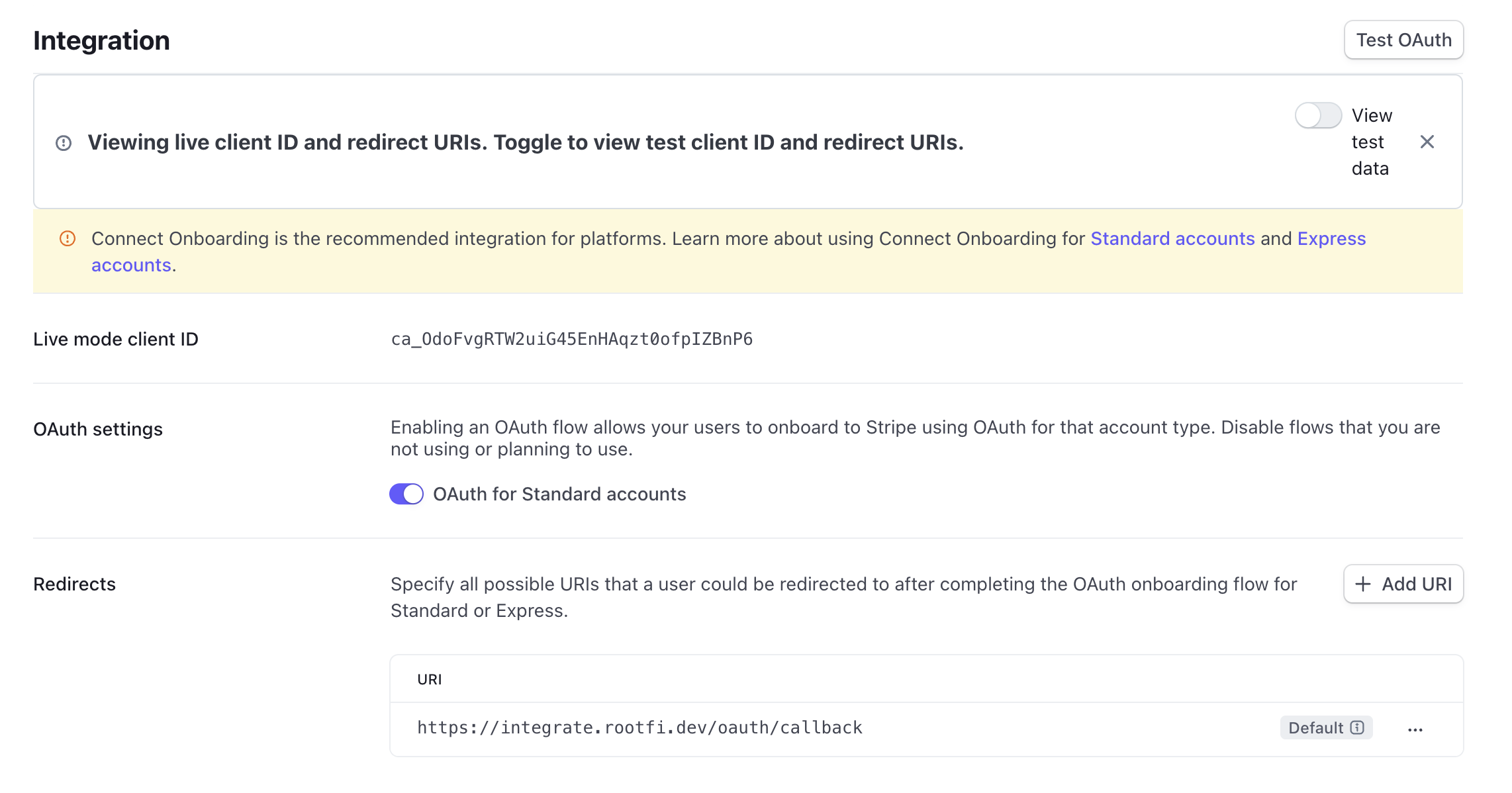 - The “Live Mode client ID” will be your Client ID that you will enter on RootFi’s dashboard in Part 2 below.