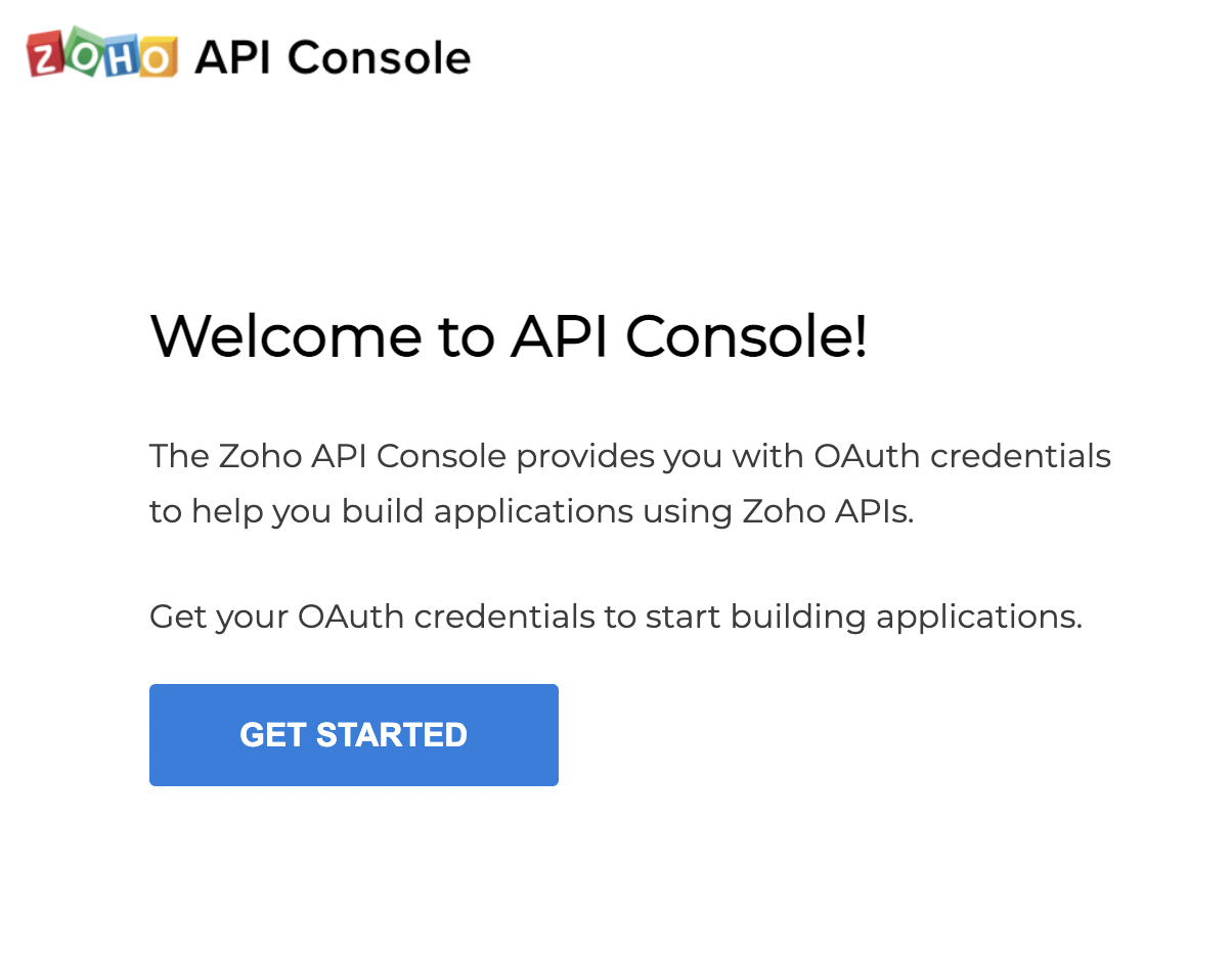 - Sign in using your Zoho Invoice credentials, and click the ‘Get Started’ button.