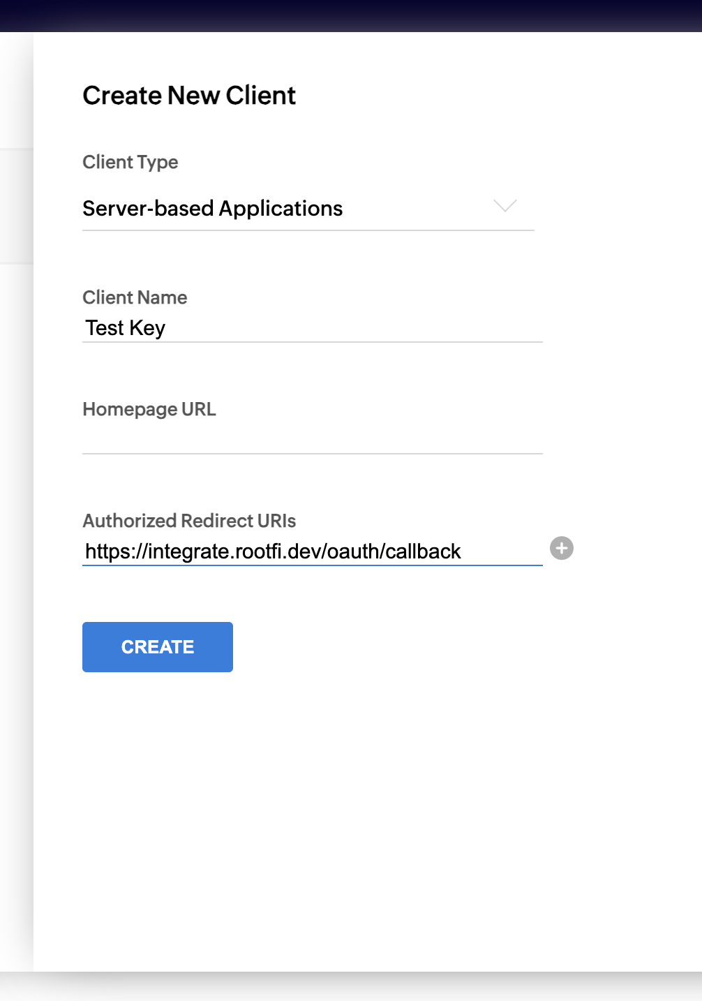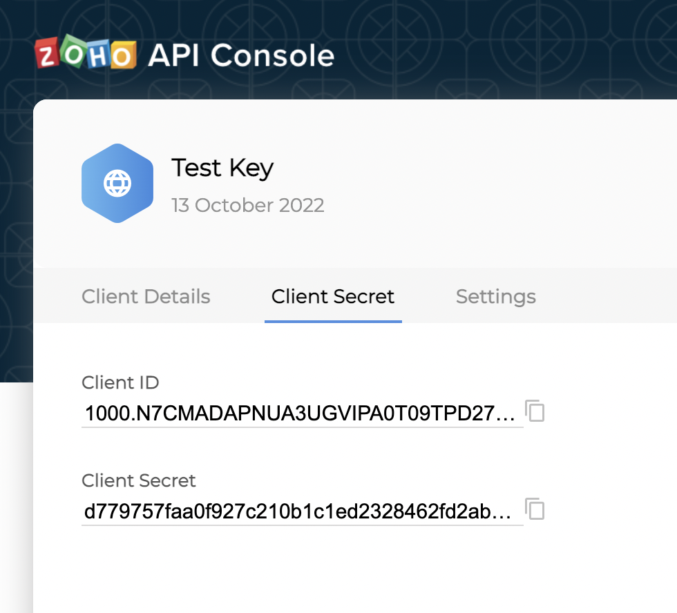 - After you click ‘Create’ and the page refreshes, you should select the ‘Client Secret’ tab. Here you will find the secure keys that you need to enter on RootFi’s dashboard in order to activate the Integration.